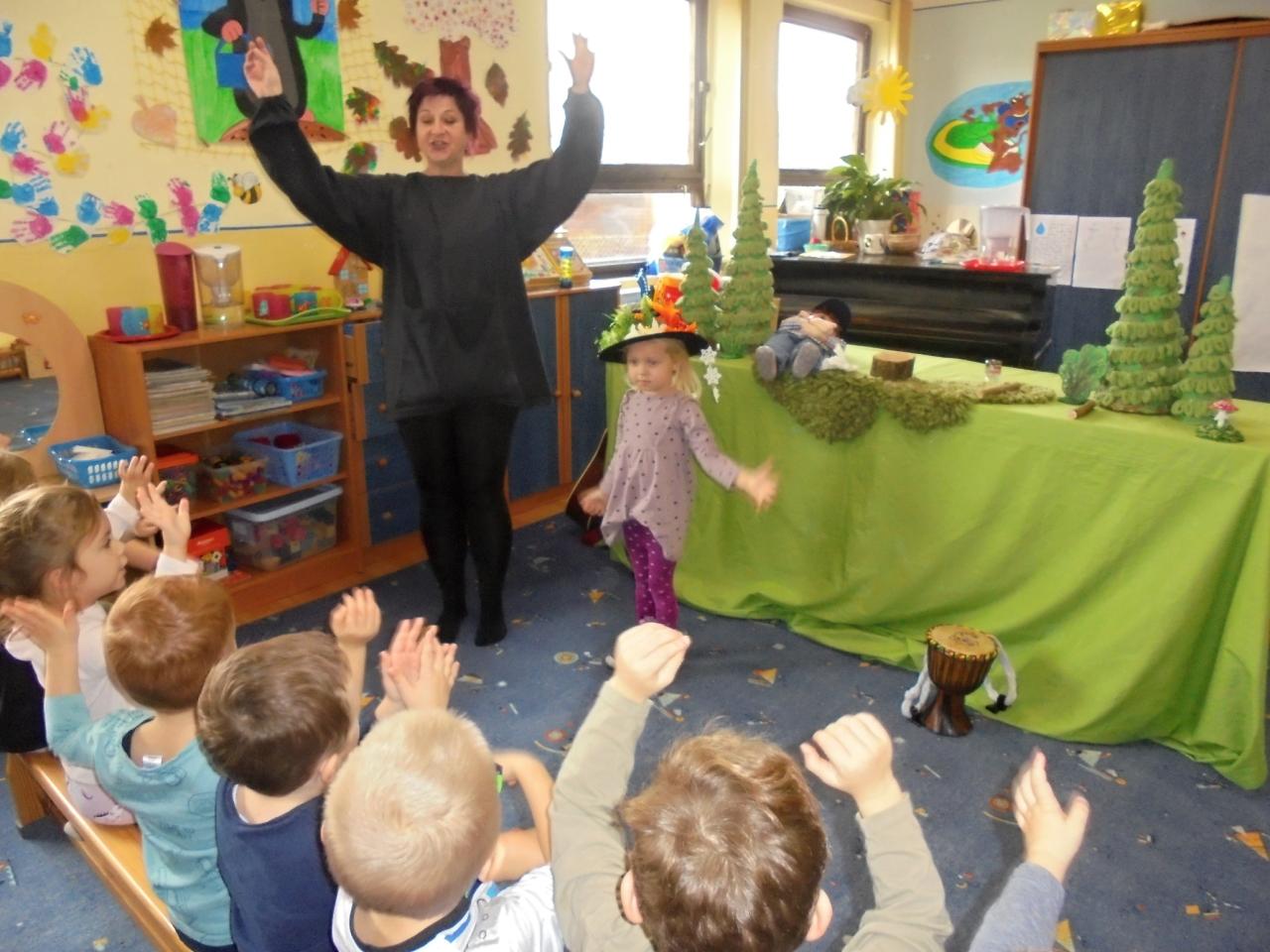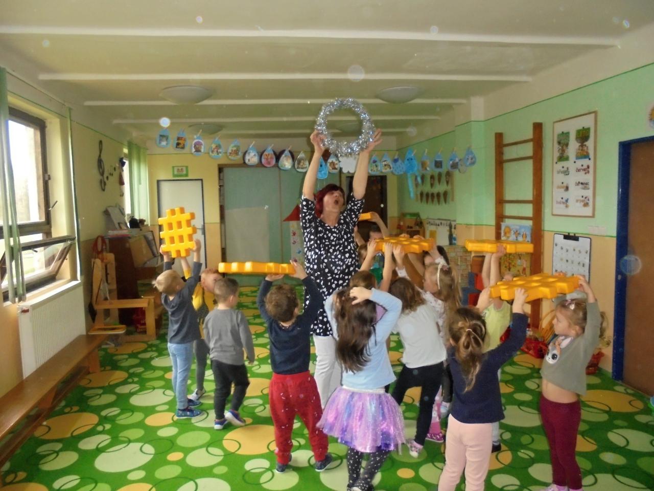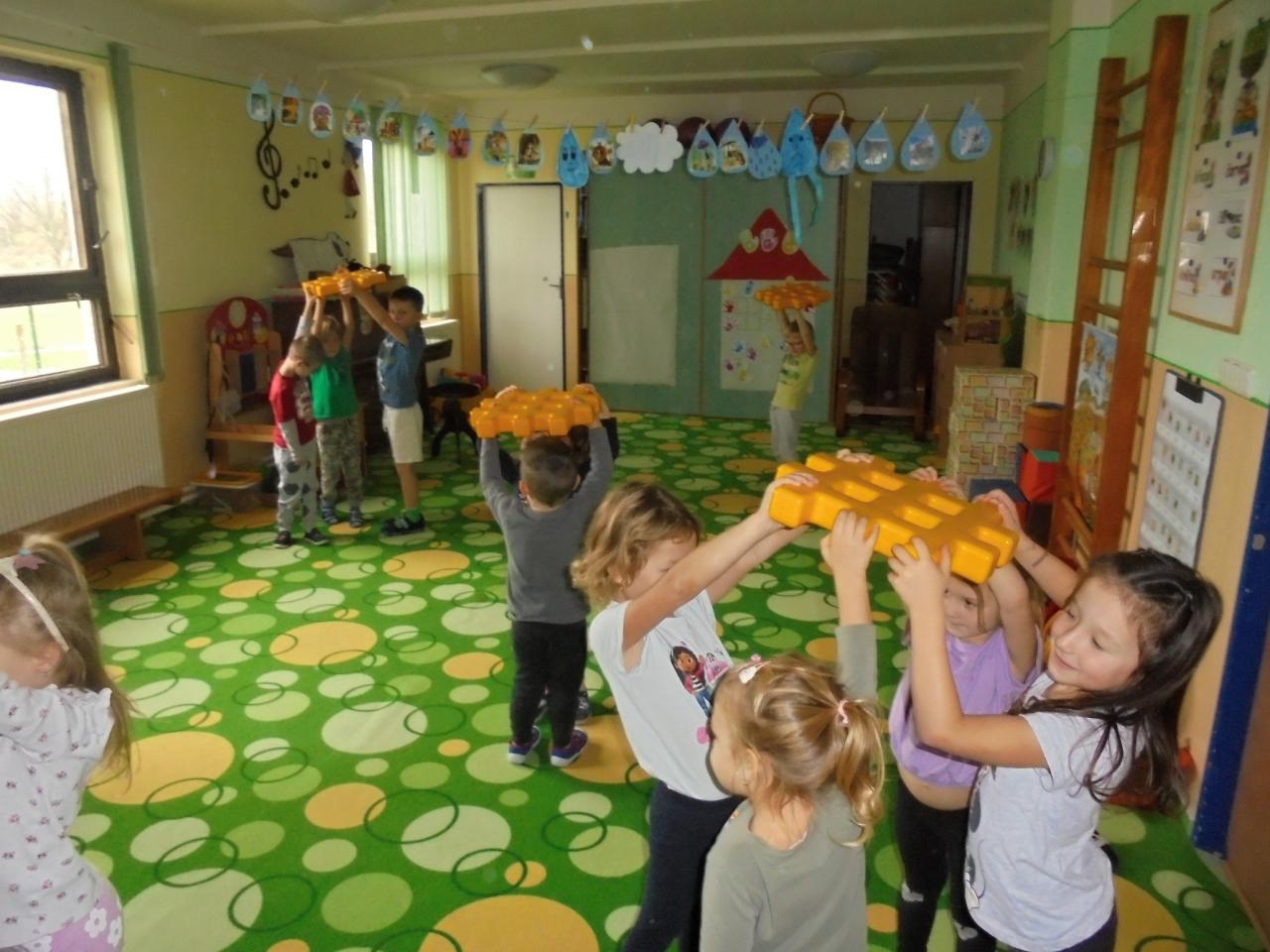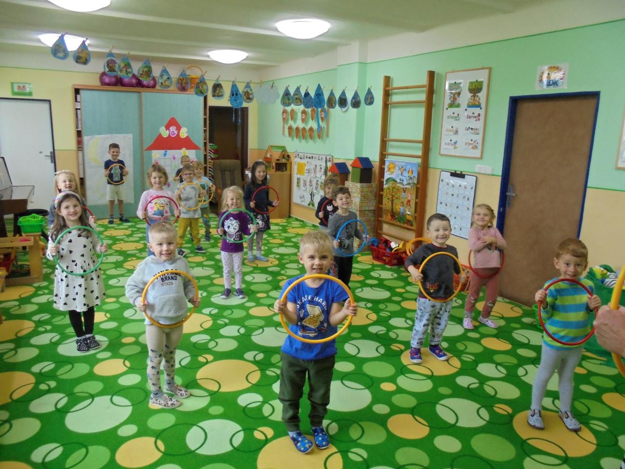 Tento týden jsme si povídali, jak se střídá den a noc. Nakreslili jsme si sluníčko a přiřazovali činnosti, které děti dělají celý den – od rána až do večera. Četli jsme si hádanky, cvičili jsme s kruhy a společně poskládali na koberci velké slunce , měsíc a hvězdy.