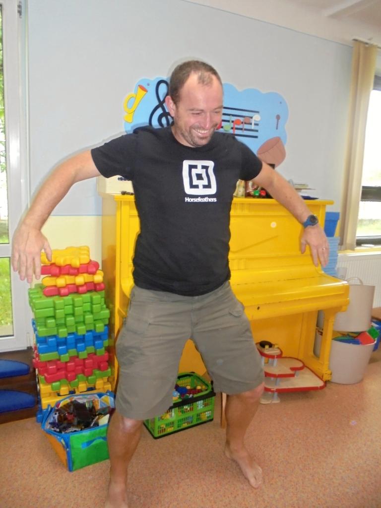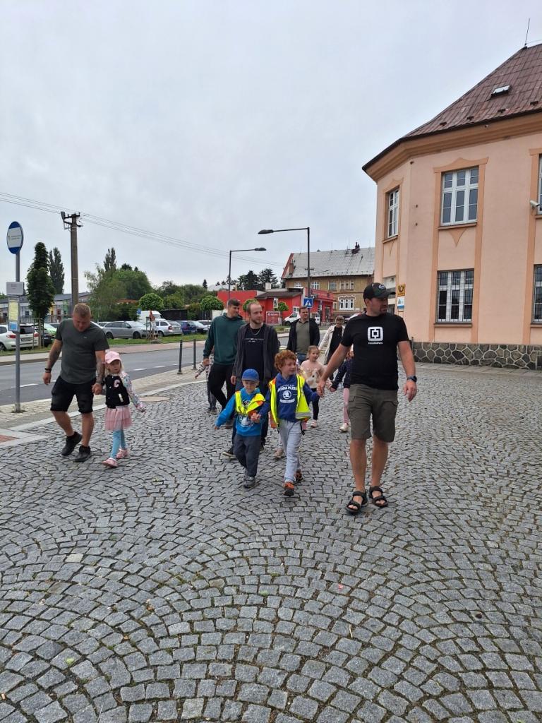 Na den otců nás navštívilo šest tatínků. Při ranních hrách se úžasně zapojili do hraní s dětmi. Byli stateční, a tak s námi zvládli i ranní kruh, poctivou rozcvičku a svačinu. Při řízené činnosti stavěli s dětmi známé zbůšské budovy. Na vycházce si zahráli pohybovou hru "Kuřátka". Užili jsme si to