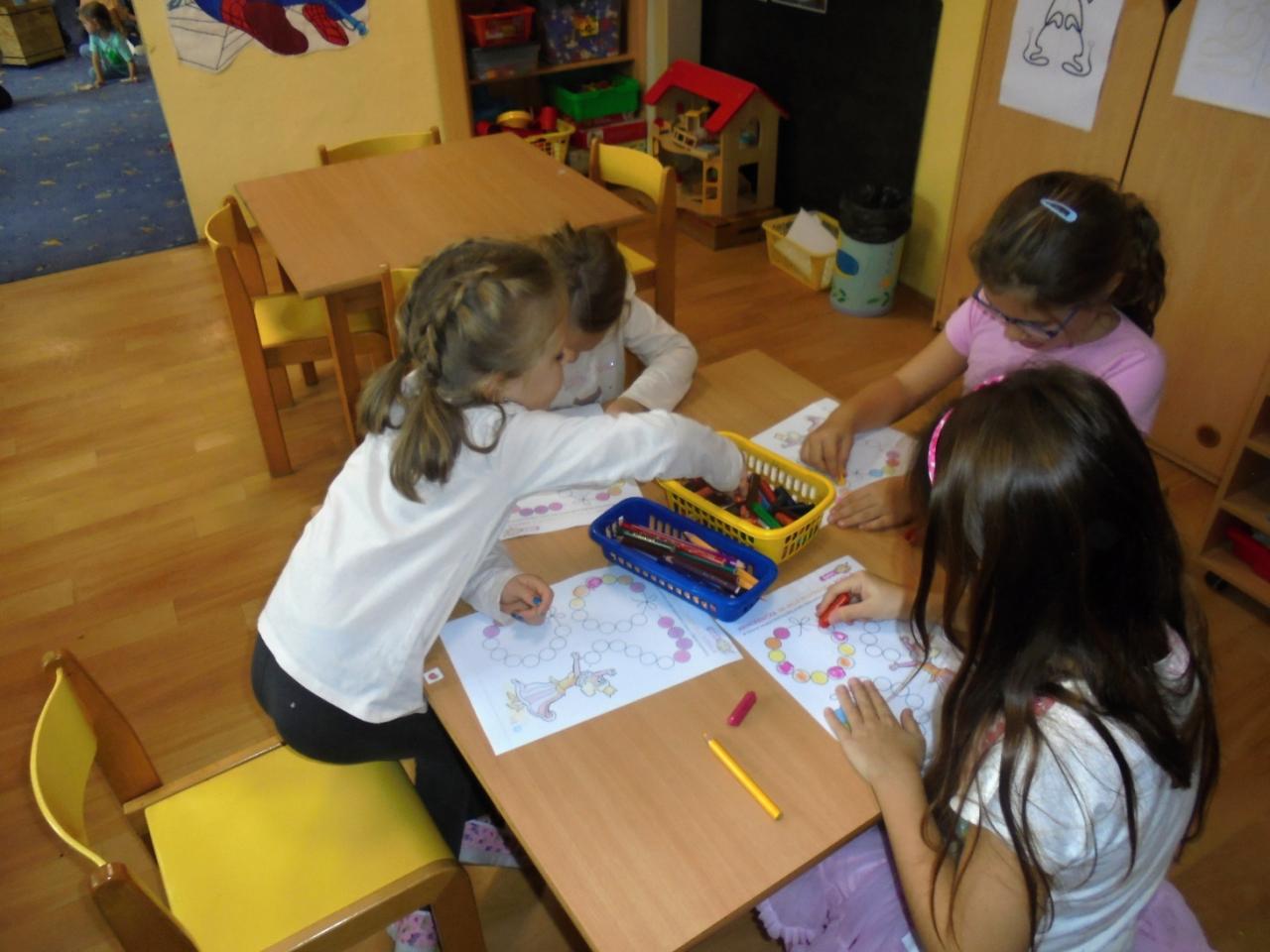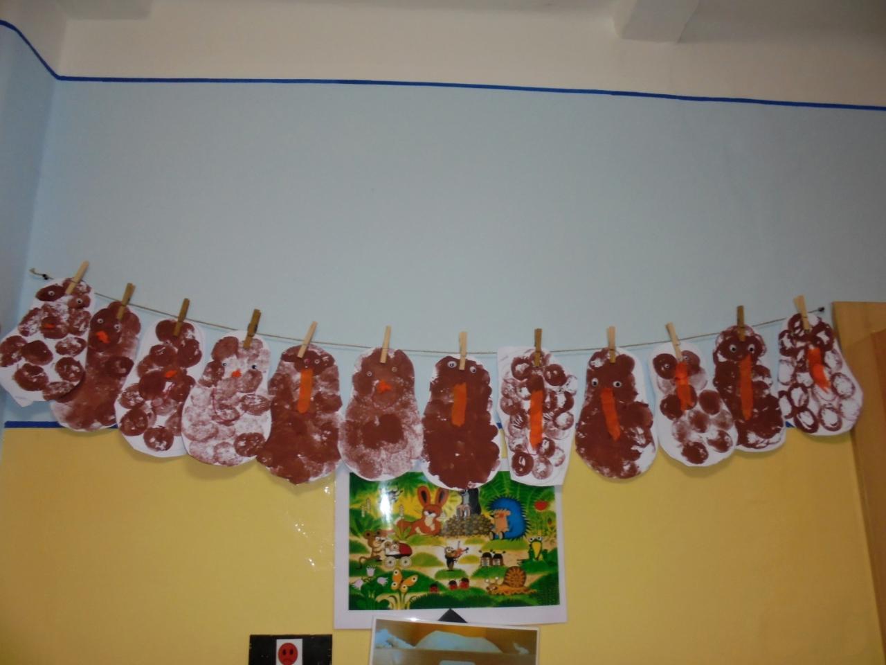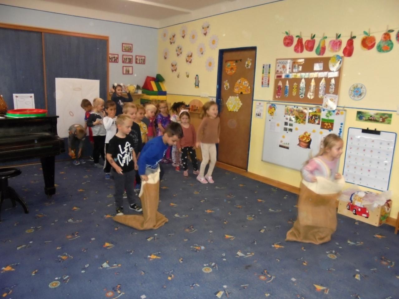 Děti vyslechly pohádku "O drakovi, který měl rád brambory", pracovaly s textem a společně diskutovaly. Navlékaly korále pro princeznu, seznámily se s písničkou "jedna, dvě,.......co s to Janku sněd" a doprovodily se hrou na ozvučná dřívka, zopakovaly si slyšený rytmus. Vyzkoušely si sklizeň brambor (sázení, sbírání brambor, skákání v pytly, převaly, svážení brambor na trakaři, třídění brambor dle velikosti). Týden uzavřely hudebně-pohybovým představením "Štrůdlování a brambobraní"