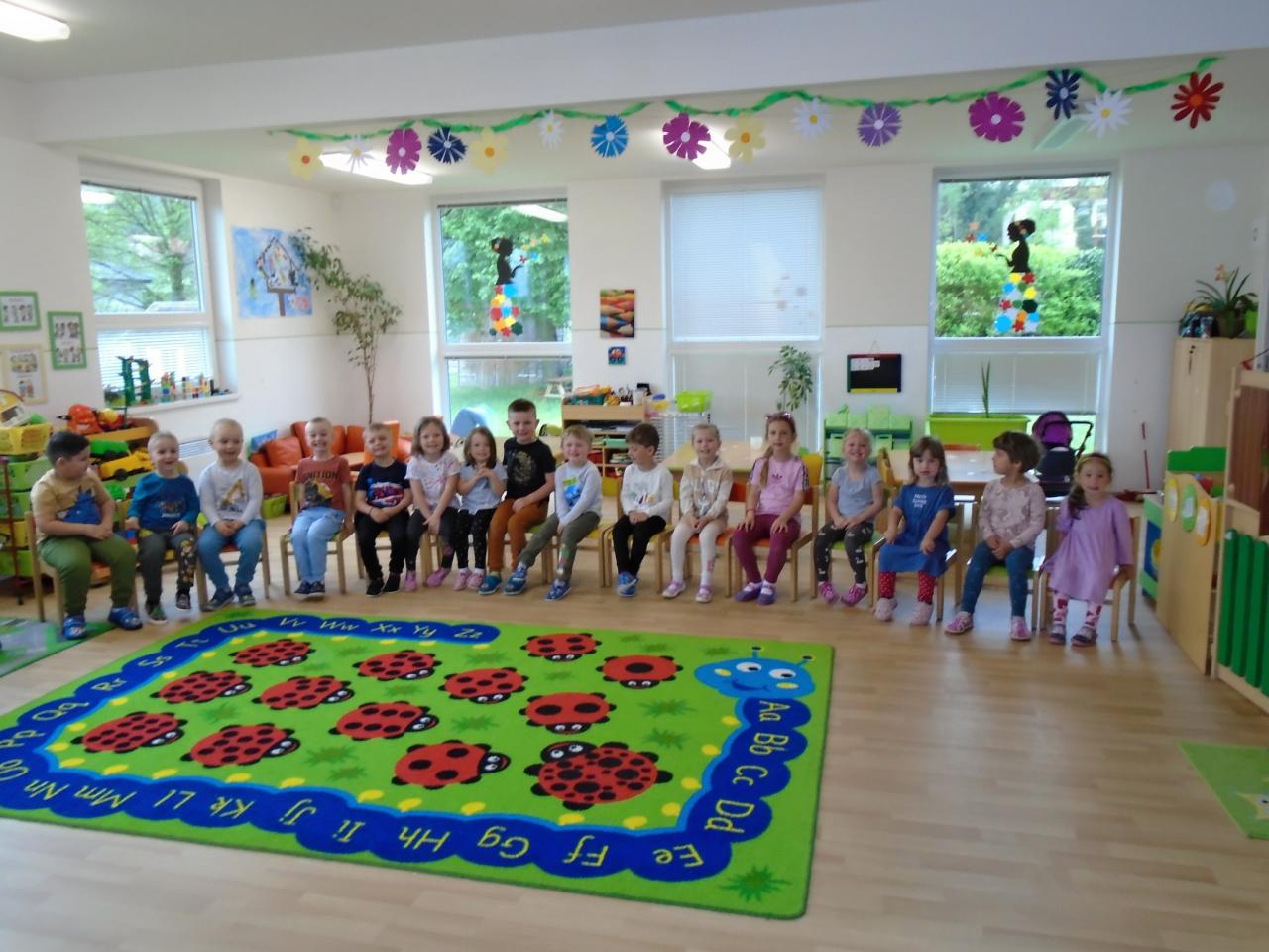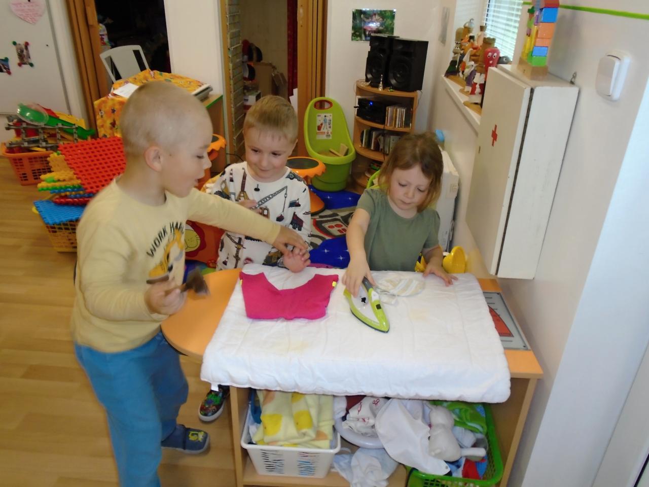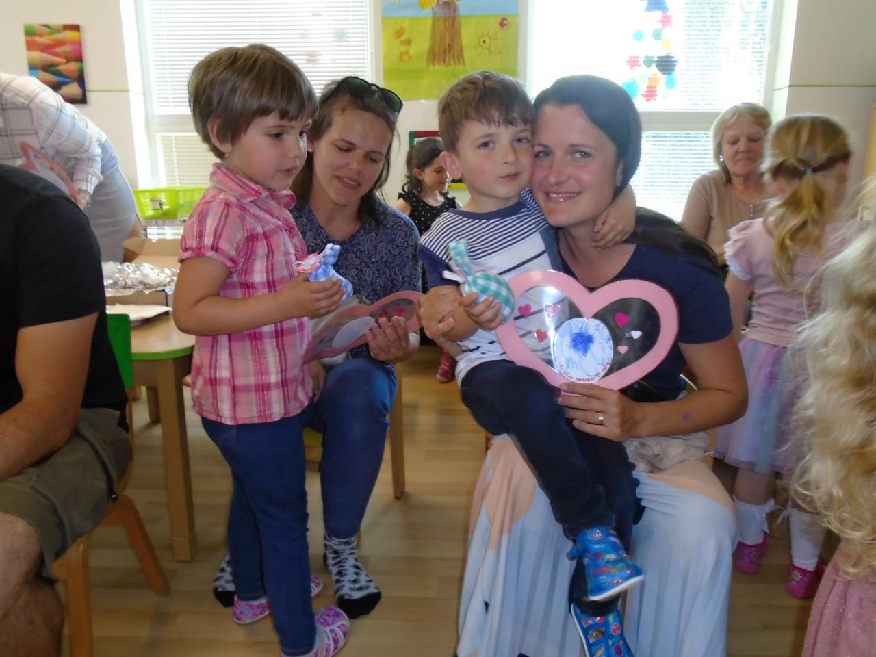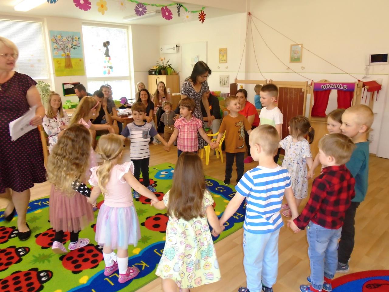 Děti se pečlivě připravovaly na vystoupení ke Dni matek. Maminkám vyrobily přáníčko a jehelníček. Vyzkoušely si věšení a žehlení prádla a učily se písmenka ze svých jmen. Cvičily jógu s kamarádkou Lali. Ve čtvrtek se u koťat uskutečnila besídka na oslavu Dne matek.