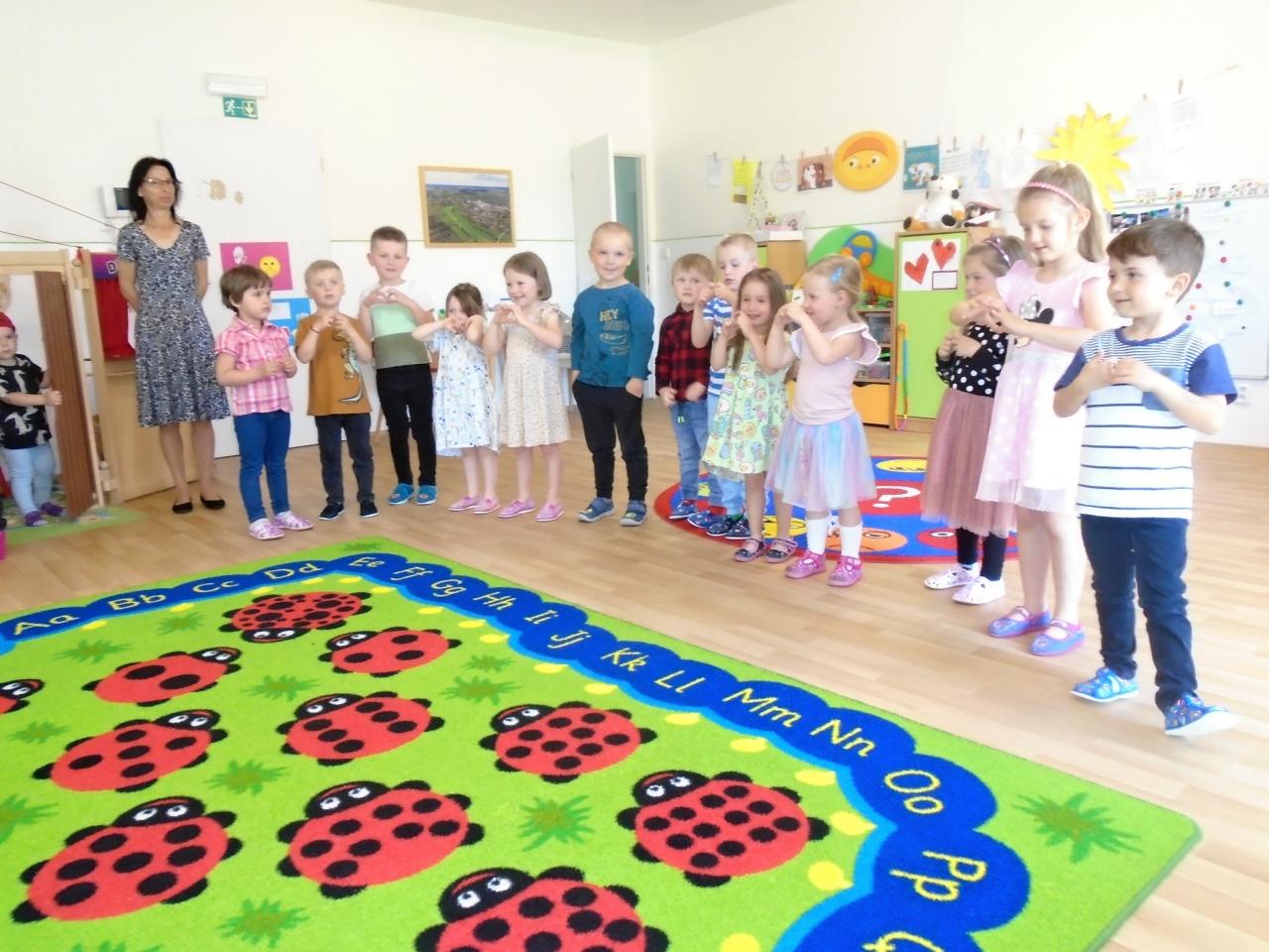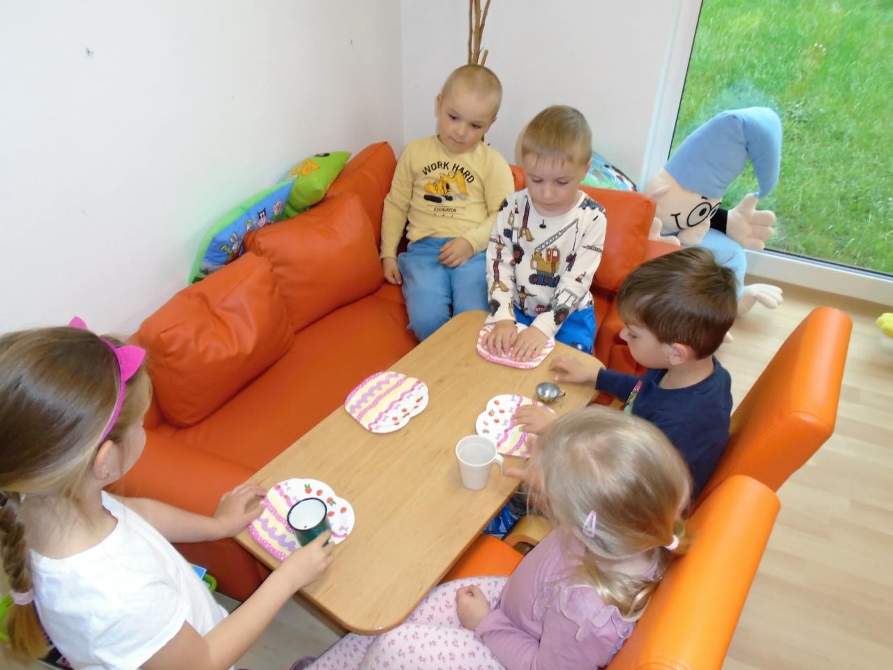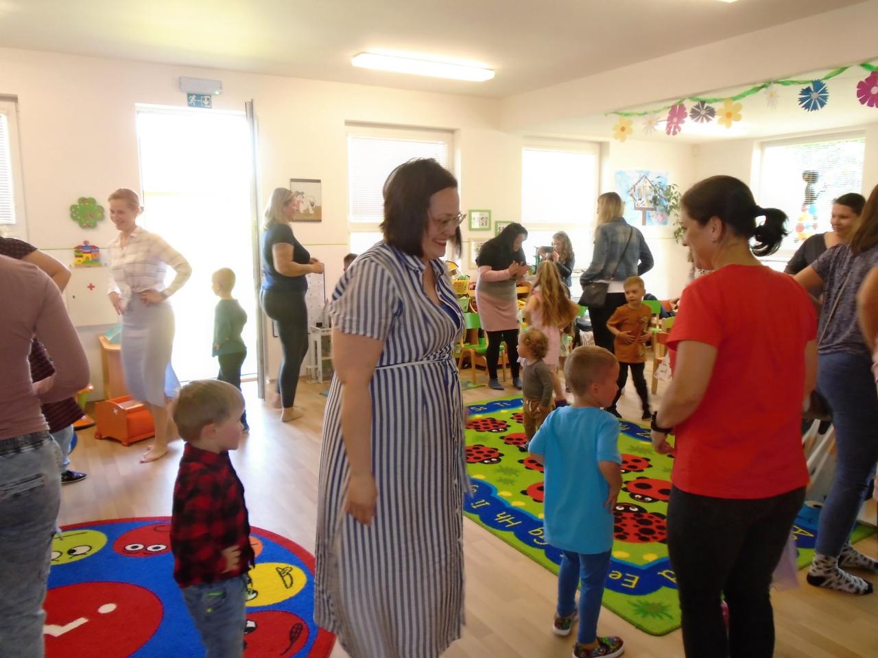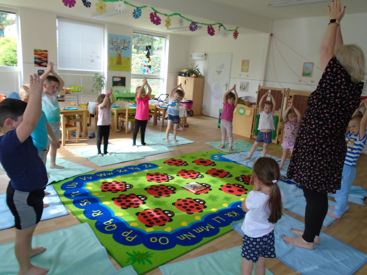 Děti se pečlivě připravovaly na vystoupení ke Dni matek. Maminkám vyrobily přáníčko a jehelníček. Vyzkoušely si věšení a žehlení prádla a učily se písmenka ze svých jmen. Cvičily jógu s kamarádkou Lali. Ve čtvrtek se u koťat uskutečnila besídka na oslavu Dne matek.
