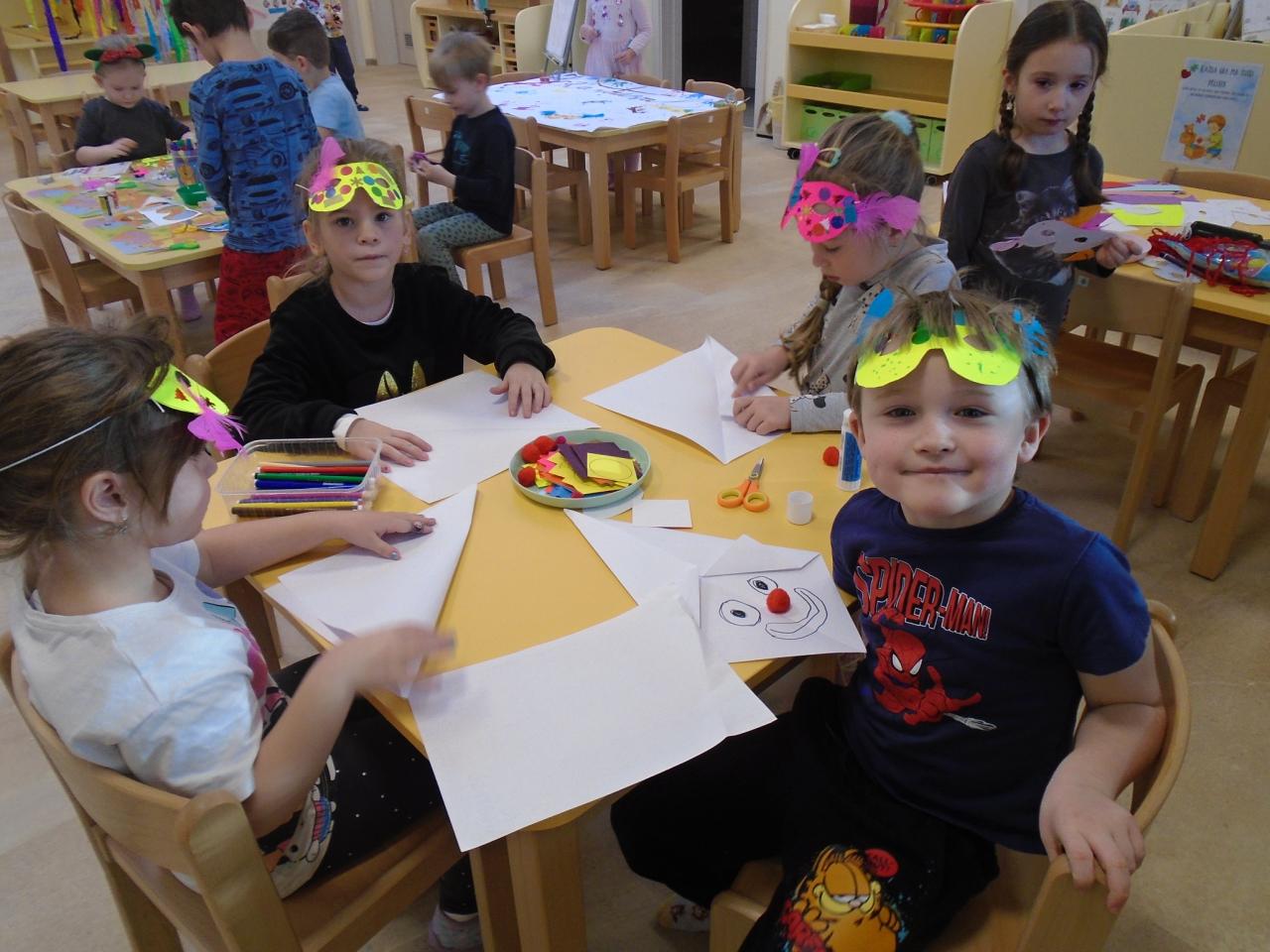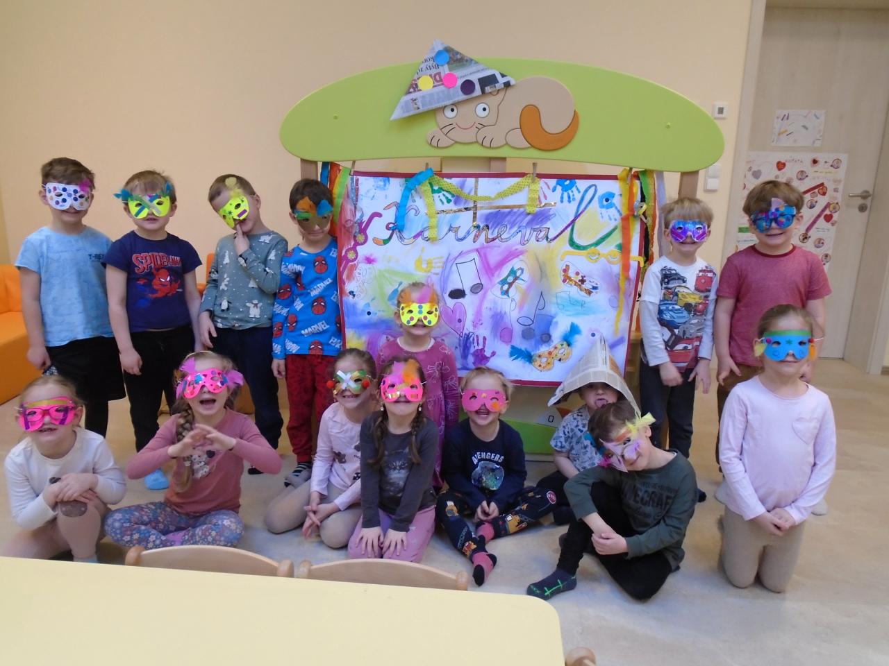 V průběhu týdne si děti společně vyzdobily třídu, vytvořily plakát, vyráběly z papíru klauna, zdobily škrabošky, naučily se písničku „ MÁME TU MASOPUST“, kterou rytmicky doprovodily jednoduchými nástroji a připravovaly se na závěrečný karneval, který proběhl v radostné atmosféře a děti si ho užily s nadšením. Chtěli bychom poděkovat rodičům i dětem za úžasné masky a výtečné pohoštění.