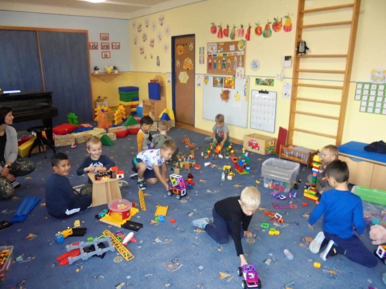 Barevný podzim si děti užily i pomocí cvičení s padákem.