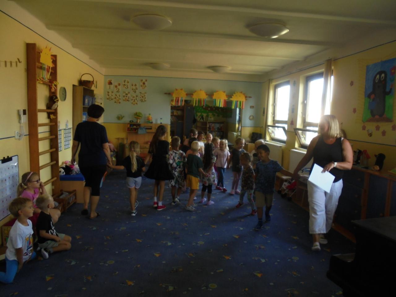Tento týden se děti seznamovaly s novými jmény kamarádů, se značkami a prostředím MŠ. Při procházce lesem jsme si na čerstvém vzduchu zacvičili, zahráli si pohybové hry a postavili pro krtečka domečky s přírodních materiálů.