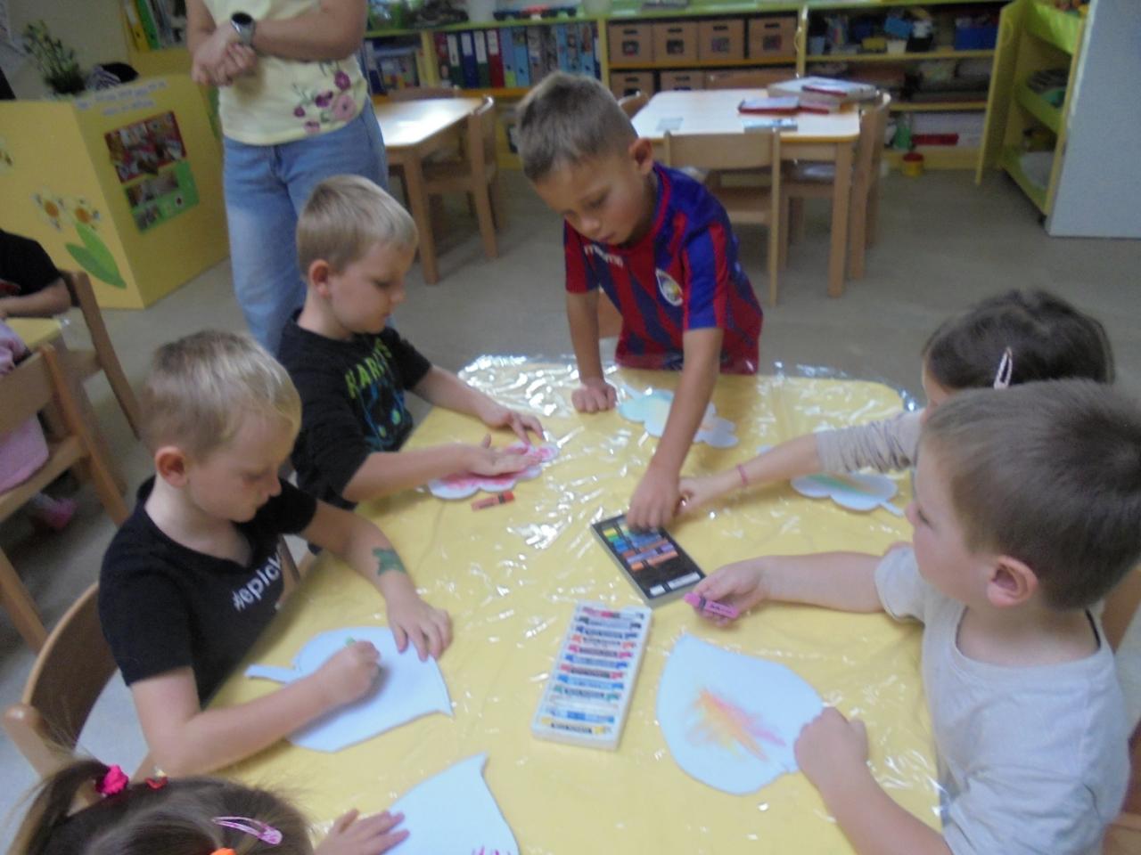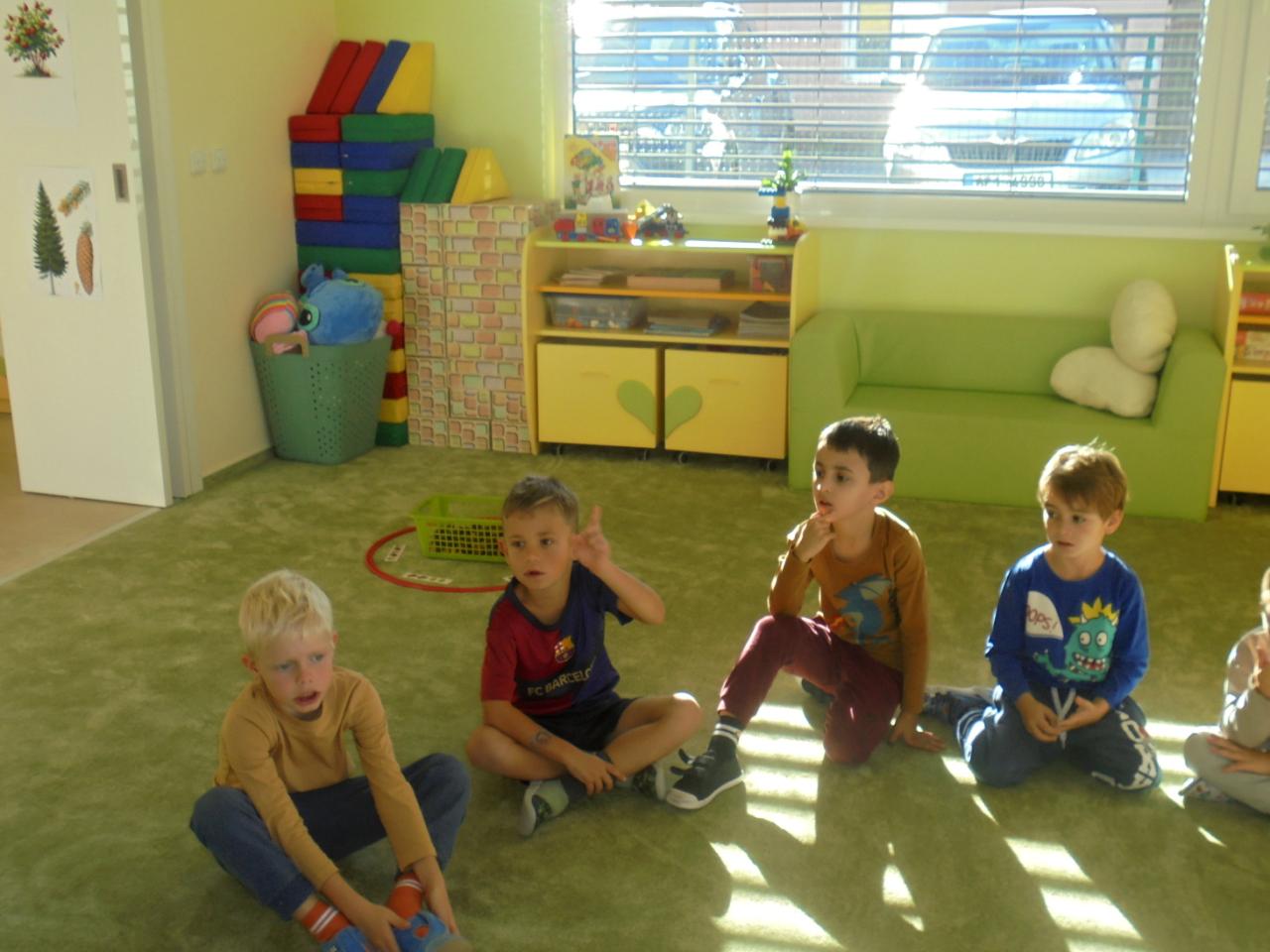 Na začátku týdne si děti vydlabaly dýňového strašáka. Předškoláci si užily další projektový den : Jak Zdravík s Jedlíkem poznávají přírodu“. V půlce týdne si děti vyrobily pomocí rozmazáním křídy barevné listy a na závěr týdne si děti prozkoumaly přírodní plody a vydaly se na výpravu za pštrosem.