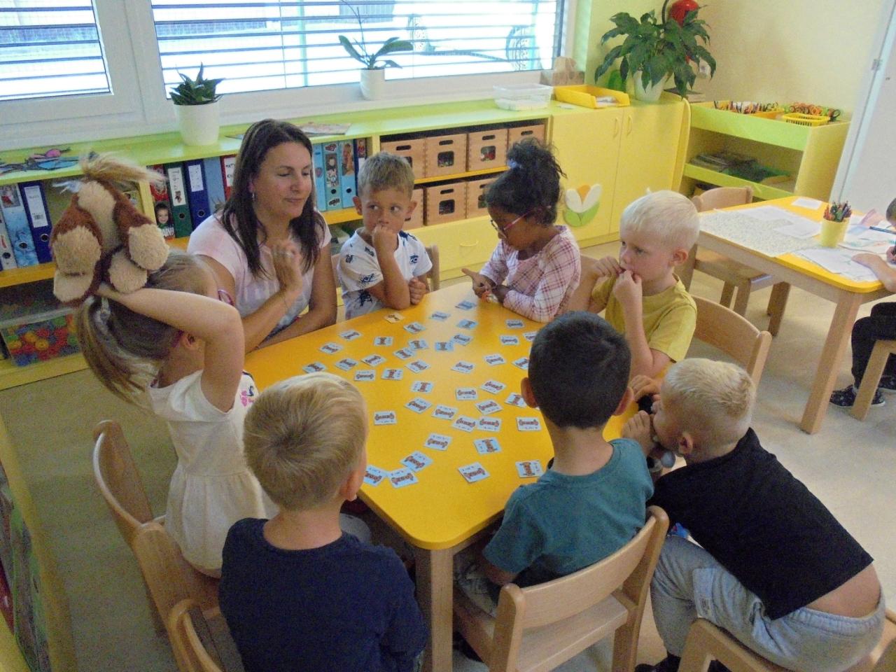 Seznámili jsme se s Večerníčkovými kamarády. Rytmizací na tělo jsme si říkali jejich jména, ukázali a pojmenovali jsme si části těla a spolupracovali jsme ve dvojicích. Pojmenovali jsme si členy rodiny a seznámili jsme se s písničkou „ Muzikantská rodina“ , kterou jsme doprovodili hrou na orffovi nástroje. Při procházkách jsme navštívili ulice, kde některé děti bydlí a závěrem týdne si děti zkusily nakresli svého kamaráda nebo člena rodiny, obrázky se dětem moc povedly.