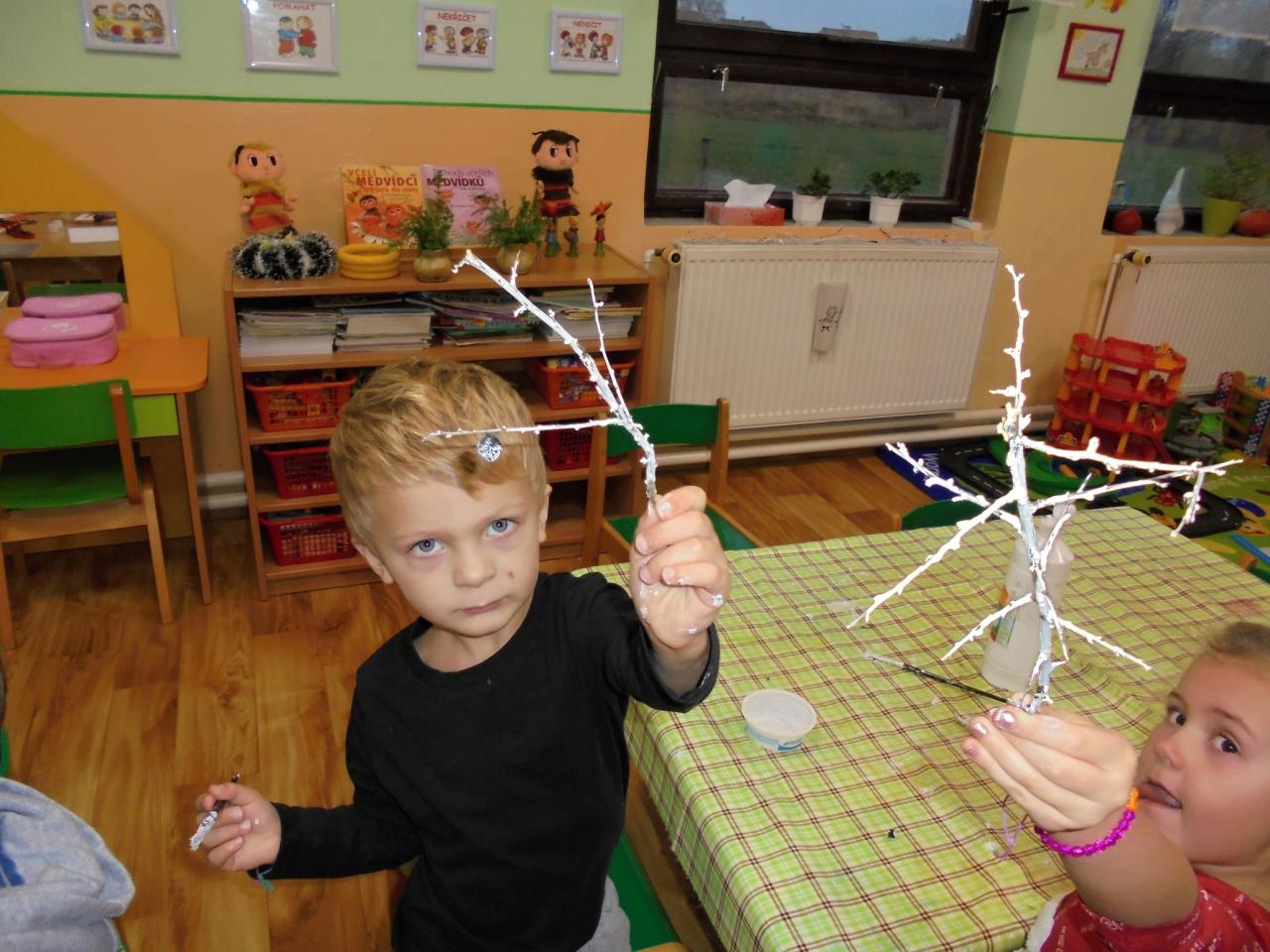 Děti využily svoji fantazii při výrobě adventního kalendáře pro výzdobu třídy. Dozvěděly se, proč svítí čtyři svíčky na adventním věnci. Procvičily grafomotoriku a věnec se pokusily nakreslit a nazdobit. Pro čertíka Bertíka vyrobily „čertovský řetěz“ ,aby nebyl smutný a mohl strašit nezbedy.