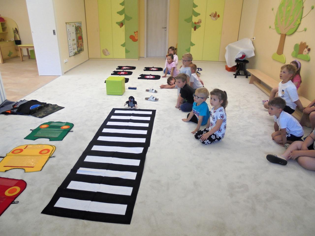 Tento týden jsme se s krtkem učili pravidla v dopravě. Vyzkoušeli jsme si správné přecházení přes přechod ( ,, Zebra‘‘) a následně si ji děti vytvořily. V úterý nás navštívilo Divadlo ,, Tančící pes Karel‘‘ , kde se děti seznámily s pejsky , kteří zatančili a ukázali skvělý výcvik. Na konci týdne jsme si vyzkoušeli dopravní ruch v okolí obce – křižovatka, pravidla chování na ulici ( chodci).