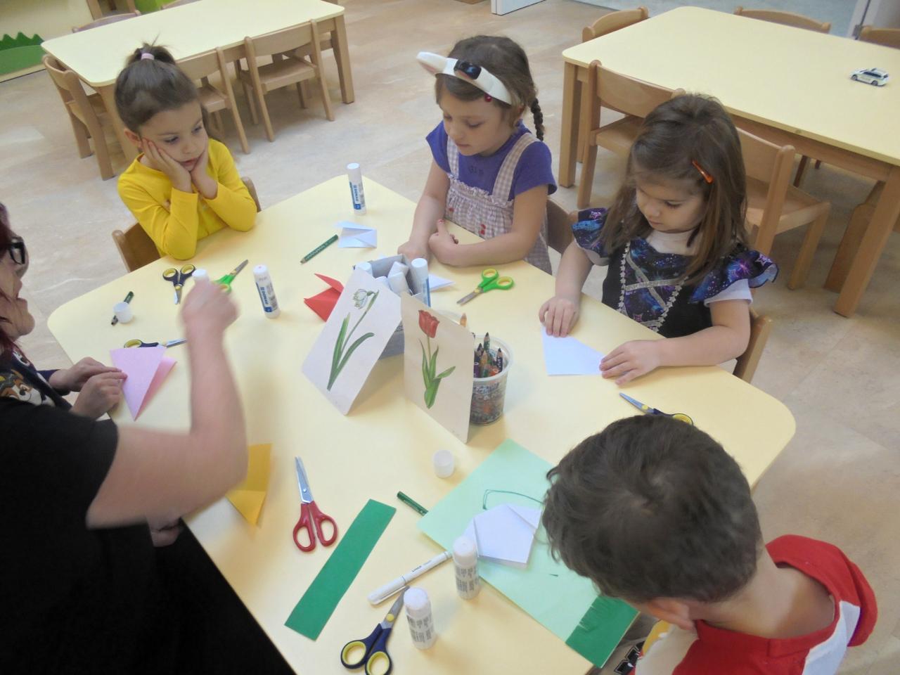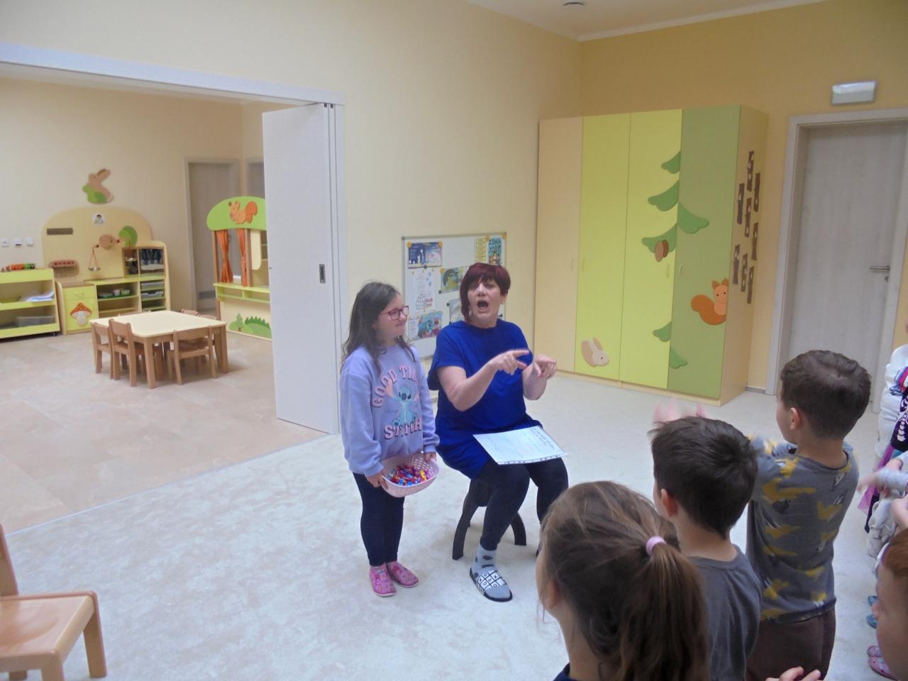 První pouť – a je tady Jaro. Večerníček vyprávěl dětem pohádku,, Jak se Martínek ztratil na pouti¨ -byl to pro děti příběh s poučením a tak si procvičily základní barvy, když společně s Martínkem hledaly maminku podle barvy šatů, které měla na sobě. K barvám pak přiřazovaly barvy prvních jarních květin, které se učily pojmenovat. Na vycházkách hledaly děti jaro v přírodě. Šatnu MŠ děti vyzdobily jarními květinami, které se pokusily poskládat z papíru. Naučily se jarní taneček – JARNÍ BRÁNA, kterou si samy postavily a nazdobily. Jeden les, jeden domek byl název pohádky, kterou jsme shlédli v místním Kulturním domě společně s dětmi ZŠ.