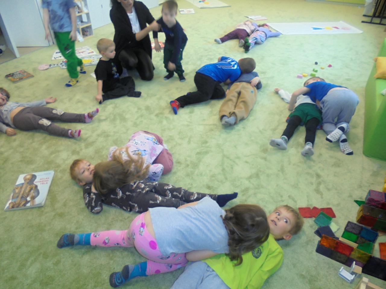 Večerníčkovi kamarádi se zranili při zimních radovánkách. Děti si pojmenovávaly části těla, hudebně se zabavily při divadelní "Veselé kytaře". Spolupracovaly při práci s naučnou literaturou a zkoumaly umístění a funkci vnitřních orgánů. Procvičily stříhání a lepení při výrobě sanitky.