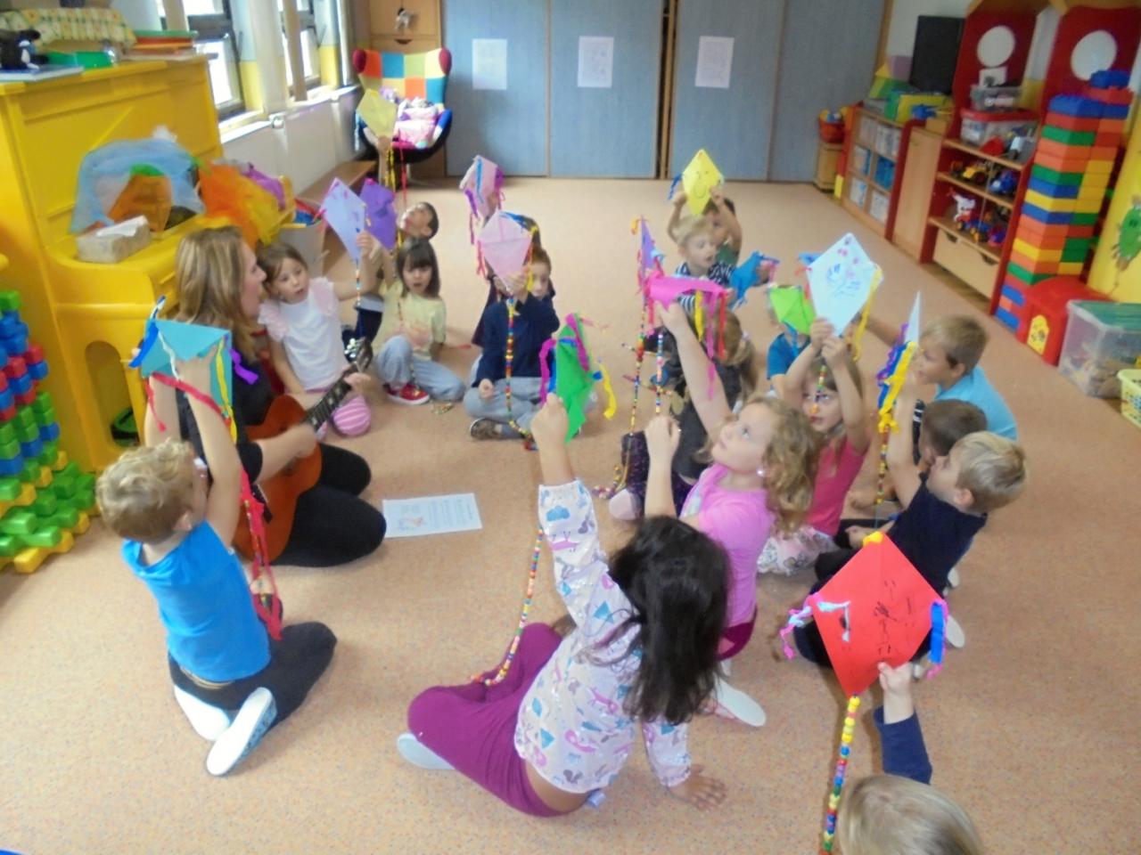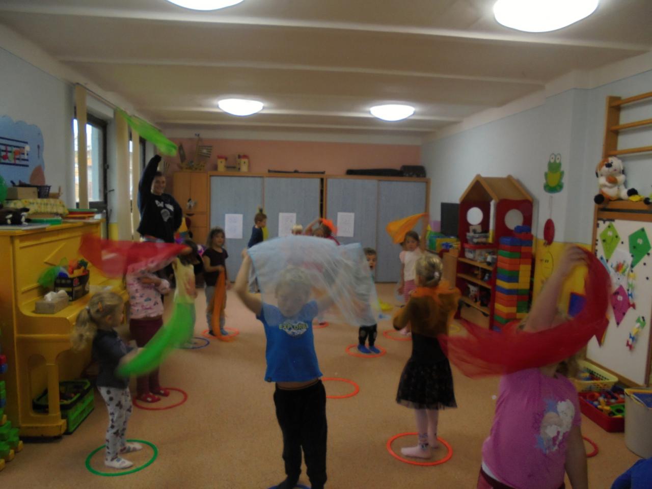 V pondělí se děti z příběhu dozvěděly, že není drak jako drak. Naštěstí do školky přiletěl ten papírový, o kterém se děti naučily písničku. S mašlemi na ocásku se naučily porovnávat množství (více-méně-stejně). Ovládat dechové svalstvo si vyzkoušely při rozfoukávání vlasů a cvičení s šátky.